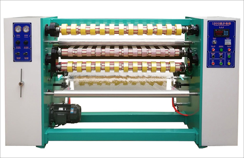 適用范圍:適用于各類透明封箱膠帶、印字印刷封箱膠帶半成品母卷的分條加工